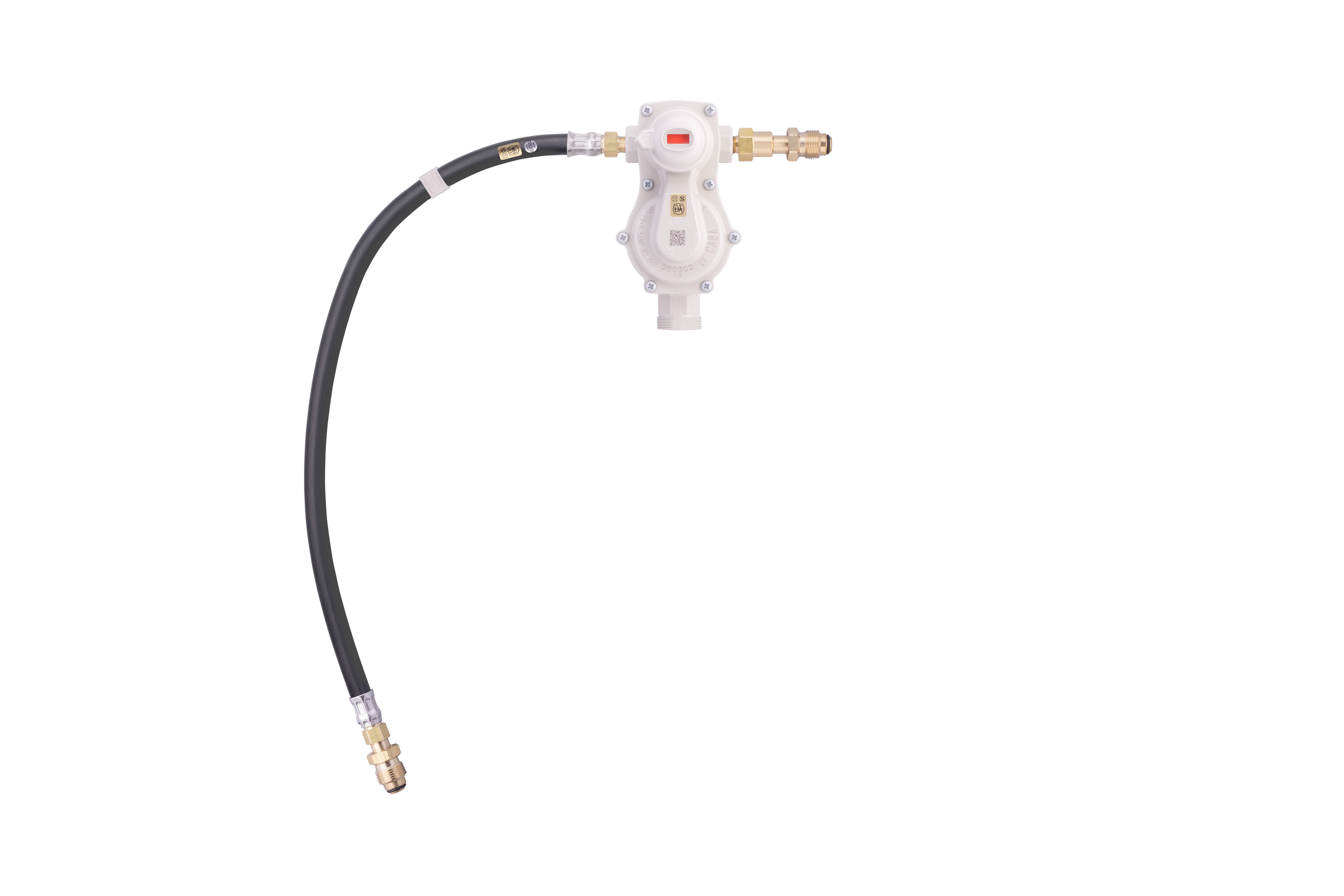 CA8A-BSP065-S8kg/h 自動切替式一体型調整器CA8A-BSP065-S製品型式CA8A-BSP065-S製品名8kg/h 自動切替式一体型調整器容量(Q)8kg/h入口圧力(P1)0.15~1.56MPa入口圧力備考異常臭気対応調整器出口圧力(P2)2.55~3.3kPa入口接続POLおねじ入口接続備考左:スパナ締ホース(BS-065付)右:折損式ガス放出防止型片ピン出口接続Rc1